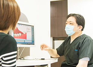 インフォームド・コンセントとは、医師が患者様に正確な情報をご説明し、納得いただいた上で治療をすることです。当院では患者様の口腔内写真などを用いながら、現在のお口の状態、治療内容、治療期間などをわかりやすくご説明します。また治療費の予定額と治療のメリットなどについても詳しくご説明し、納得いただいた上で治療を始めていきます。
